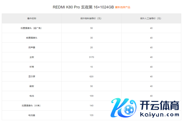 在REDMI K80推出事后,官网也当令进行了维修劳动价钱的更新。以K80Pro为例,价钱相比贵的是主板和屏幕,其中主板价钱3170元(1TB版块),屏幕则要620元。电板则只需要159元,关于升级了6000大电板的K80Pro,价钱还算合算。