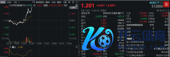 A股顶流券商ETF(512000)早盘低开颠簸,突发直线拉升,场内价钱现涨2.3%,及时成交额超7亿元,已靠拢前一日全天成交额,交投活跃。