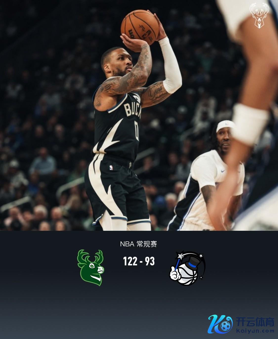 第四节雄鹿利拉德拿下8分,魔术奎因拿下9分,最终雄鹿122-93驯服魔术