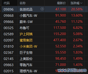 8月22日音尘,港股三大指数震撼走高。驱散收盘,恒生指数涨0.93%,报25339.14点,恒生科技指数涨2.71%,国企指数涨1.17%。盘面上,科网股涨多跌少,快手涨超4%,小米涨超2%,好意思团、腾讯、阿里巴巴涨超1%,哔哩哔哩跌超6%,联思跌超2%;半导体板块大涨,华虹半导体涨超17%;军工股午后走强,航天控股涨超5%;新动力车企股震撼走高,小鹏汽车涨超13%;新消耗意见回暖,名创优品涨超20%;航空股走弱,中国国航跌超5%。