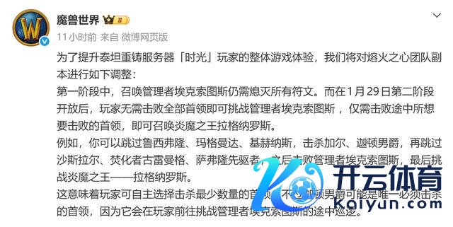 魔兽宇宙时光服的熔火之心其实还是上线了比较长一段时辰了,比较于之前的怀旧服来说,魔兽宇宙时光服的雷火松开相对来说比较克制一些ky体育官网登录入口网页版,而当今雷火终于开动对熔火之心动刀了,不外此次看起来是松开,执行上并莫得太多的松开,仅仅优化了玩家们打本的时辰,以及让玩家们有更好的选拔,不错依据自身情况来选拔旅途,那么此次改了什么呢?