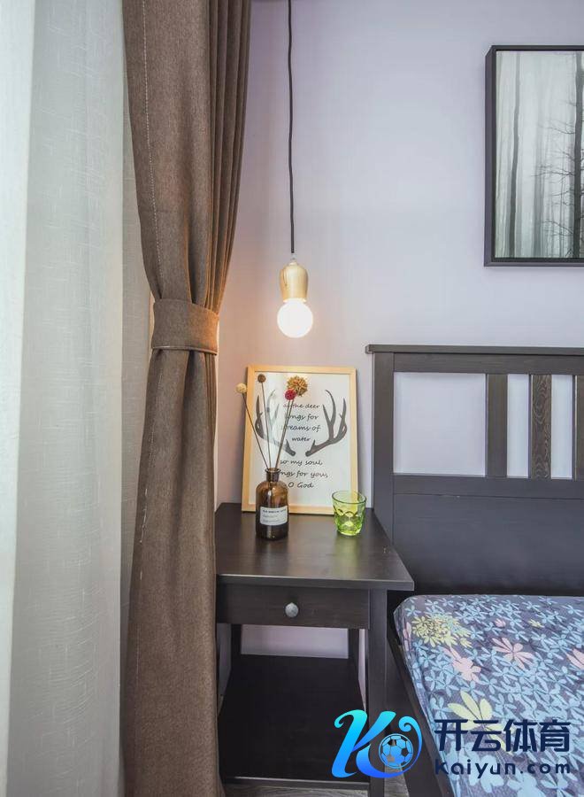 ▲床头柜上的花瓶、掩盖画与一张吊灯,在细节处也交接出温馨当然的眉目感。