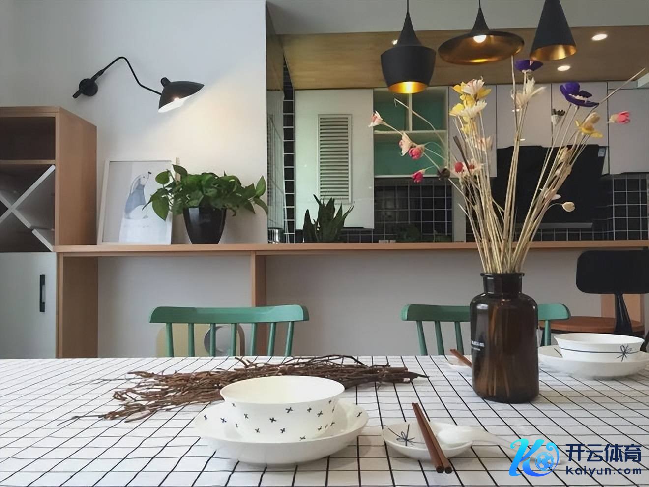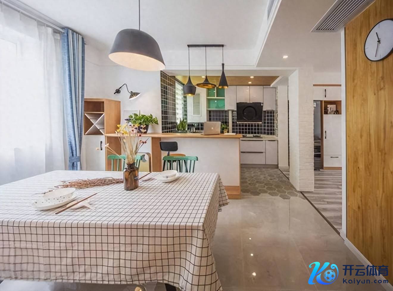 ▲回家后的第一眼,看到的绽放式的餐厨空间,举座检朴文艺的空间,显得闲恰当然。