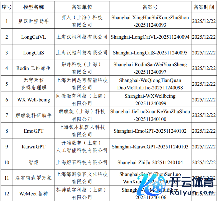 上海市新增12款已完成备案的生成式东谈主工智能职业云开体育上海市新增12款已完成备案的生成式东谈主工智能职业